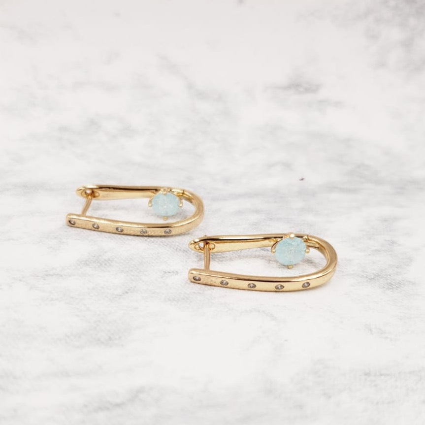 Arete en oro laminado con zirconias color blanco y azul cielo