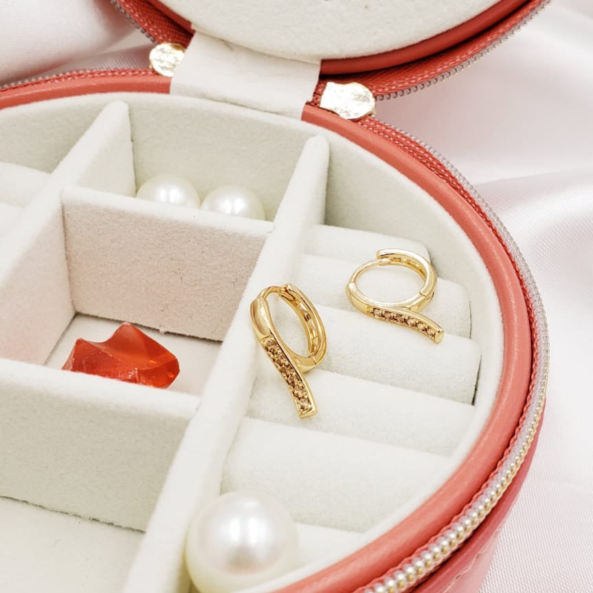 Huggie en oro laminado con zirconia ámbar
