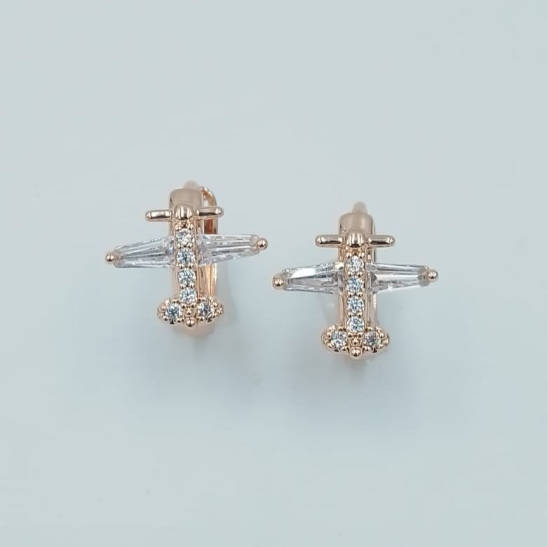 Huggie oro laminado con forma de avión y zirconias color Blancas ,